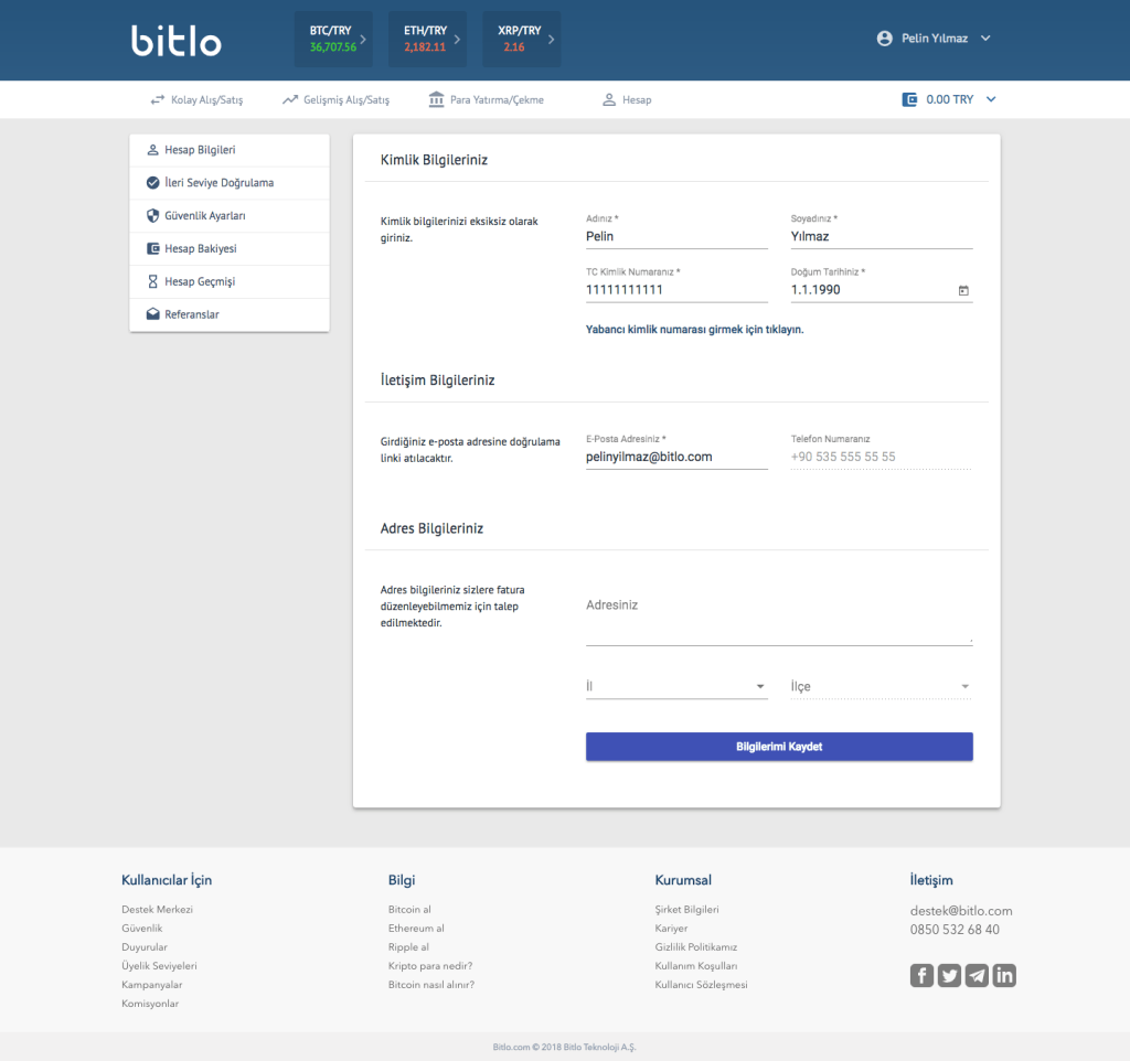 4. AÇILAN “HESAP BİLGİLERİ” SAYFASINDA KİMLİK BİLGİLERİMİZİ GİREREK HESABIMIZI DOĞRULUYORUZ.
