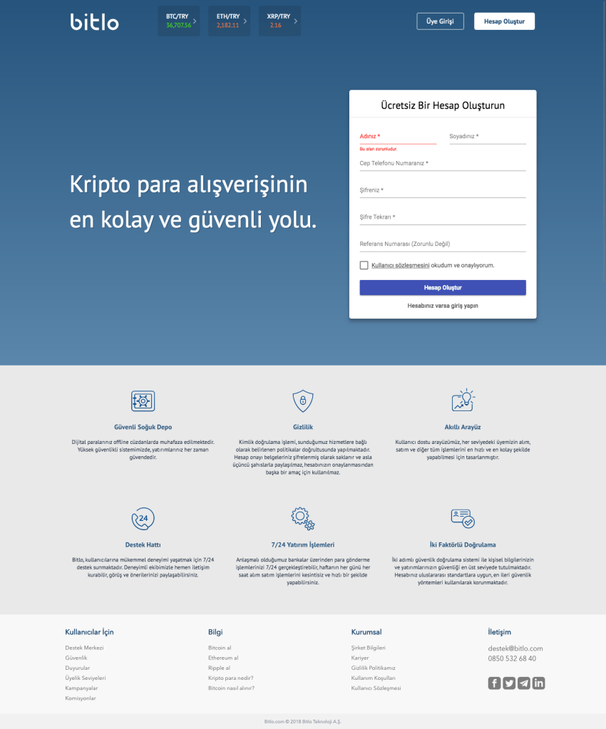 Bitcoin almak için yapmanız gereken tüm aşamaları madde madde sizin için hazırladım. Kripto para isminden dolayı bu işlemlerin zor olduğunu düşünebilirsiniz ancak geçtiğimiz yıllarda bu alanda kullanıcı deneyimi üzerine yoğun şekilde çalışan Bitlo.com gibi siteler ortaya çıktı ve bu işlemleri gayet kolay bir hale getirdiler. Resimlerden dolayı yazı çok uzun gözükebilir ama süreç gerçekten çok basit.